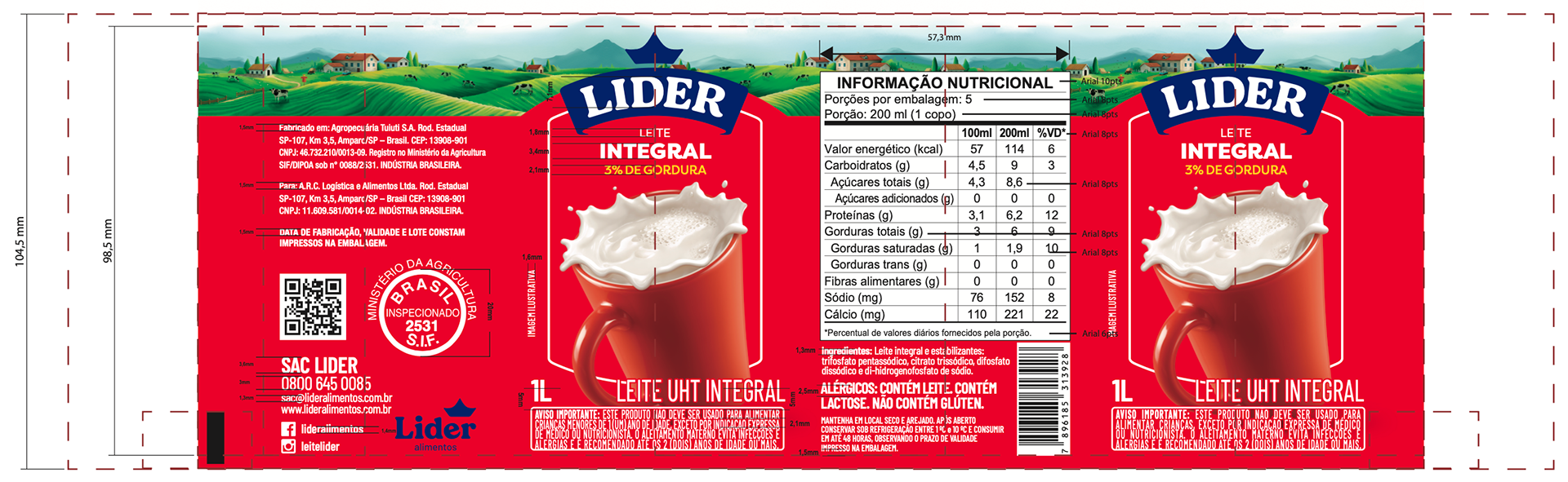 Outro elemento muito marcante na identidade visual dos produtos Lider é a ilustração do campo, onde localizamos a nossa origem e de onde vem nossos produtos. Assim este elemento criado a mão por um ilustrador ganhou um lugar de destaque no topo das embalagens, criando um elemento icônico para toda a extensão de linha.