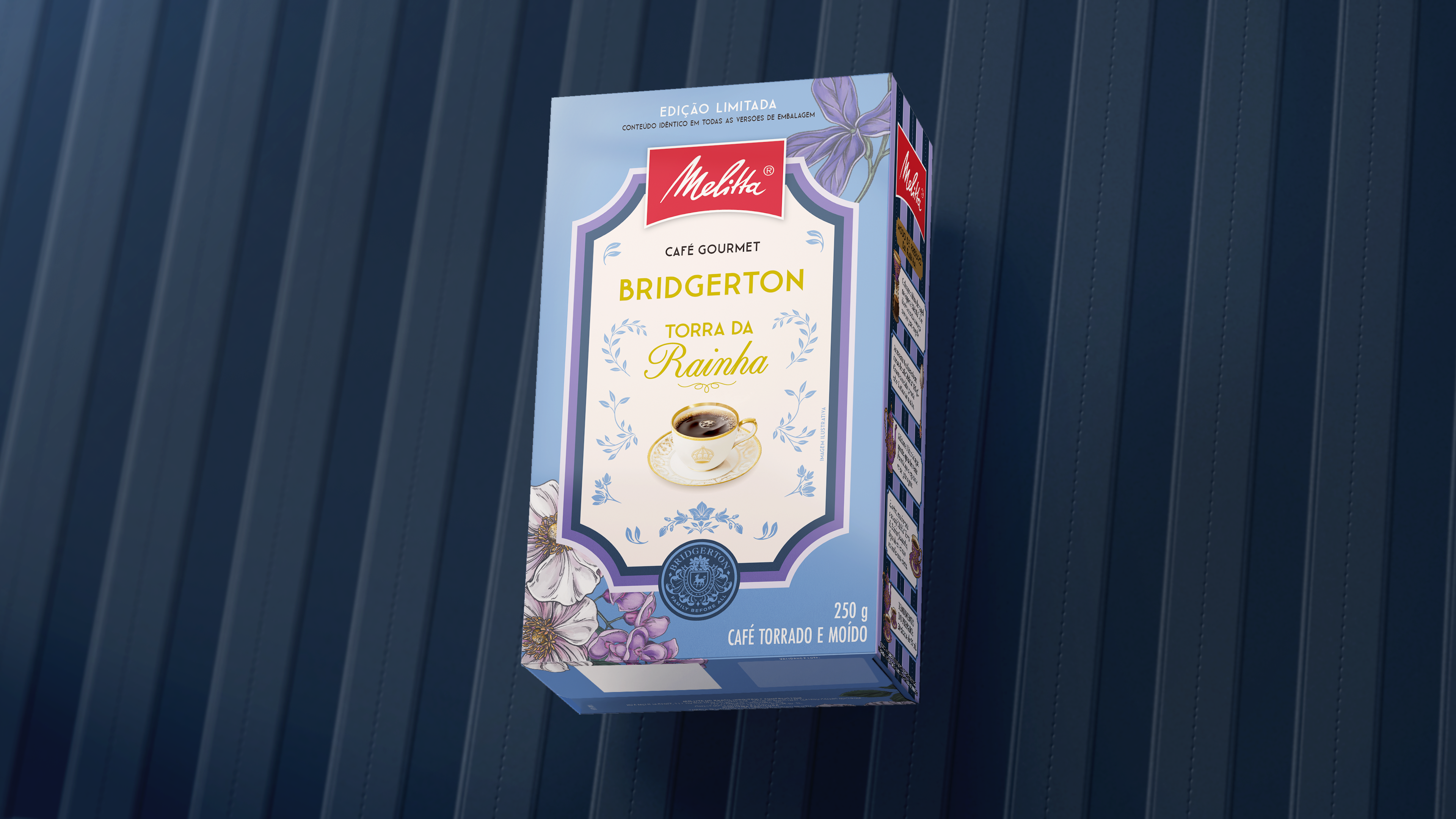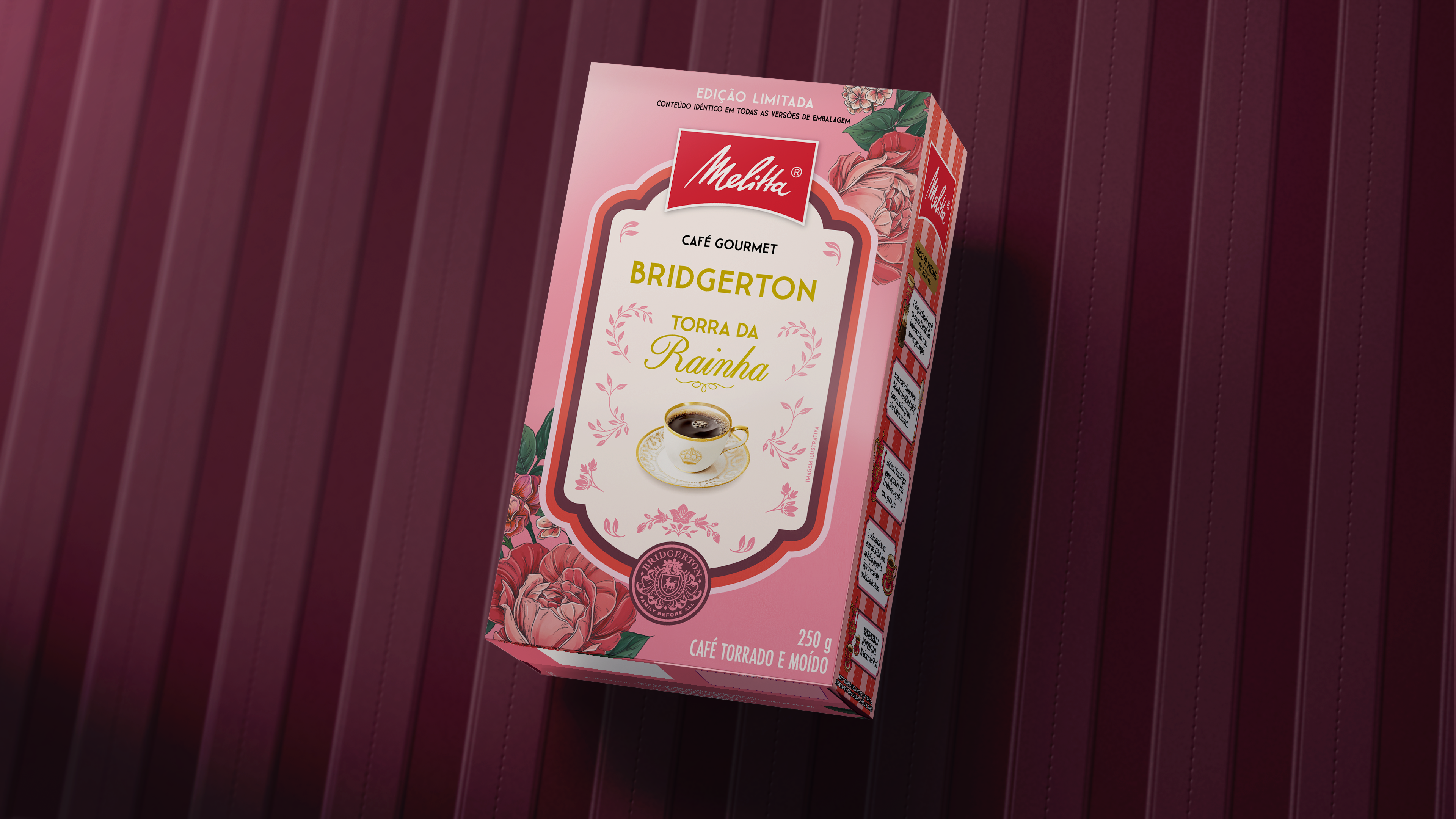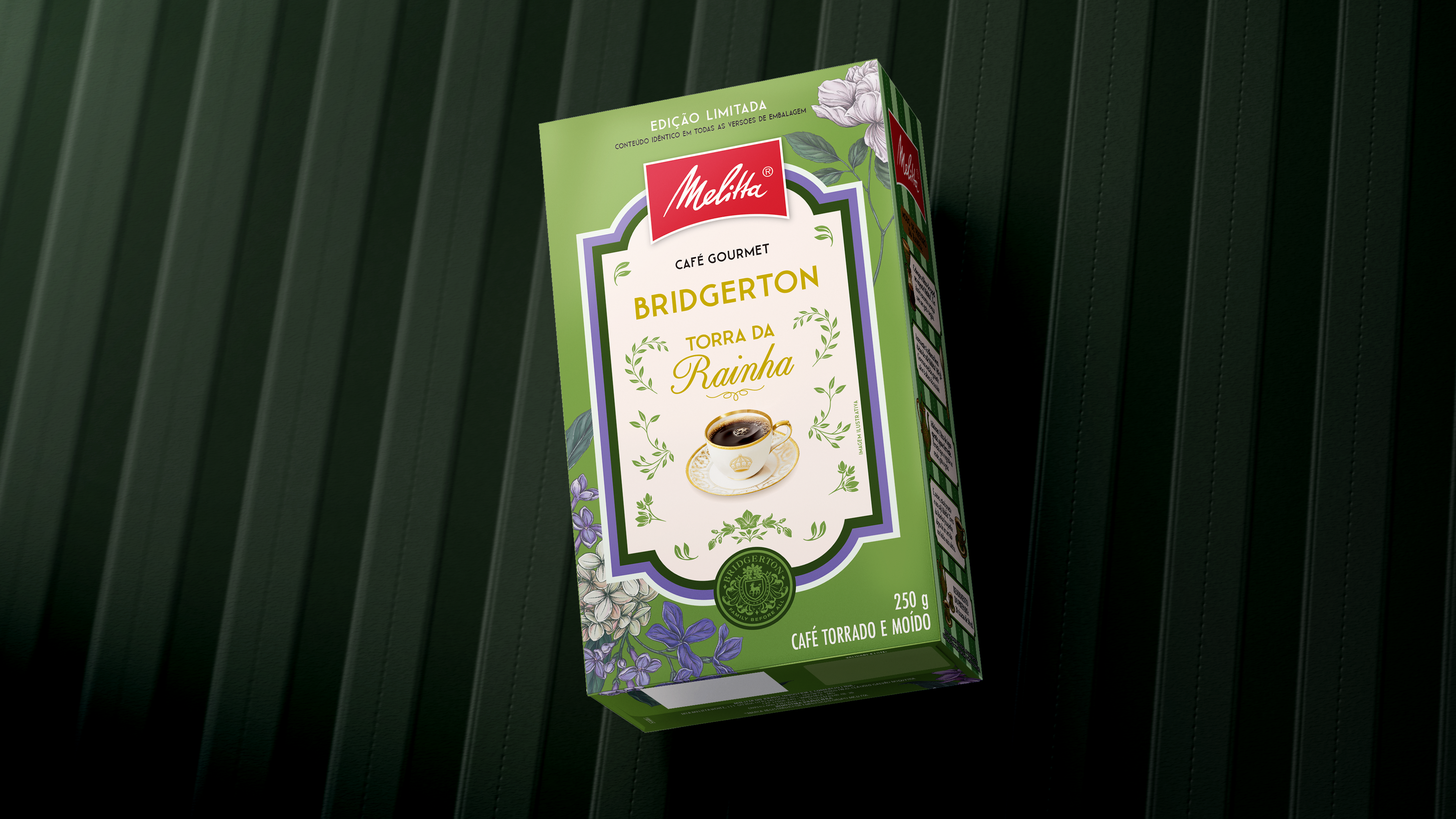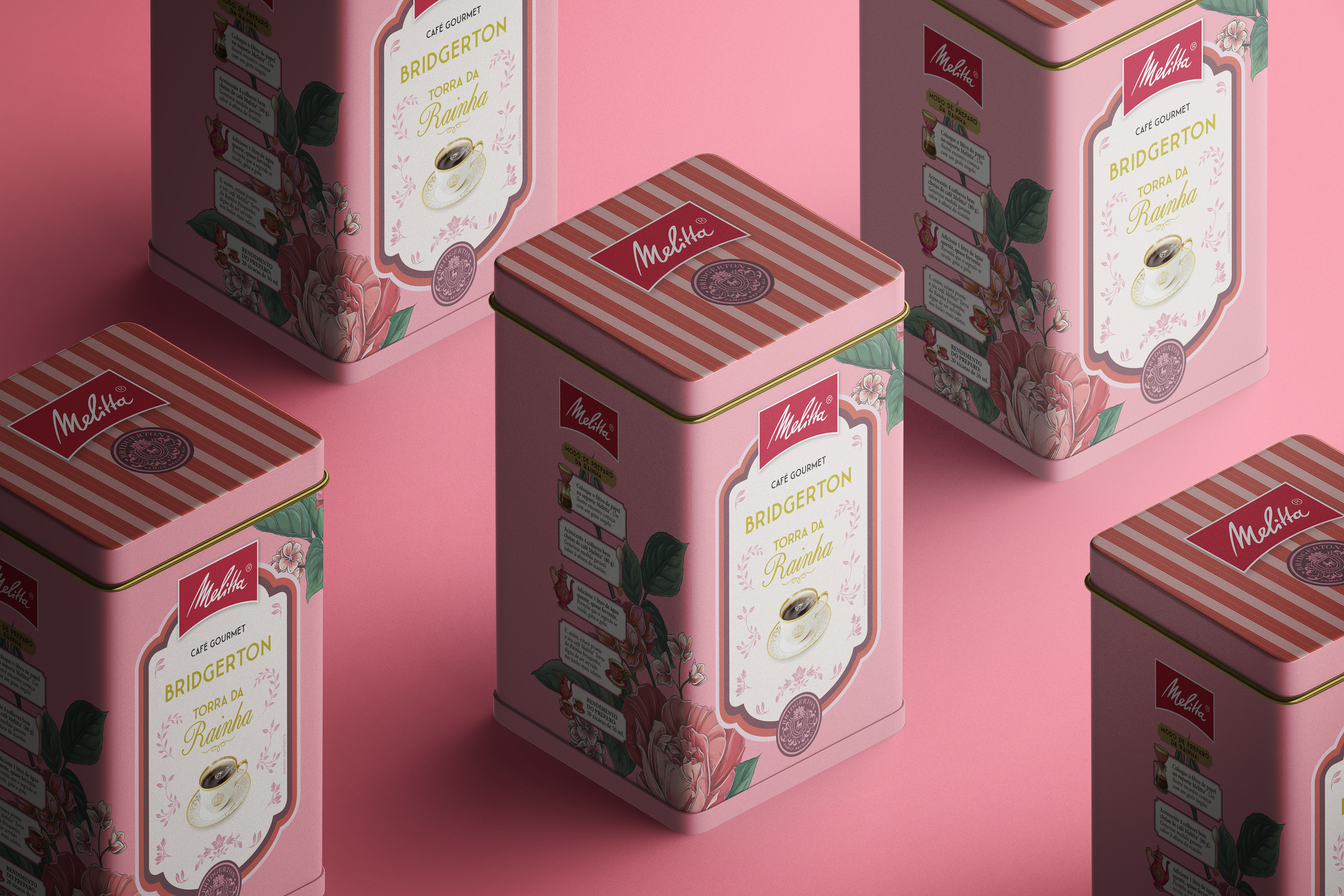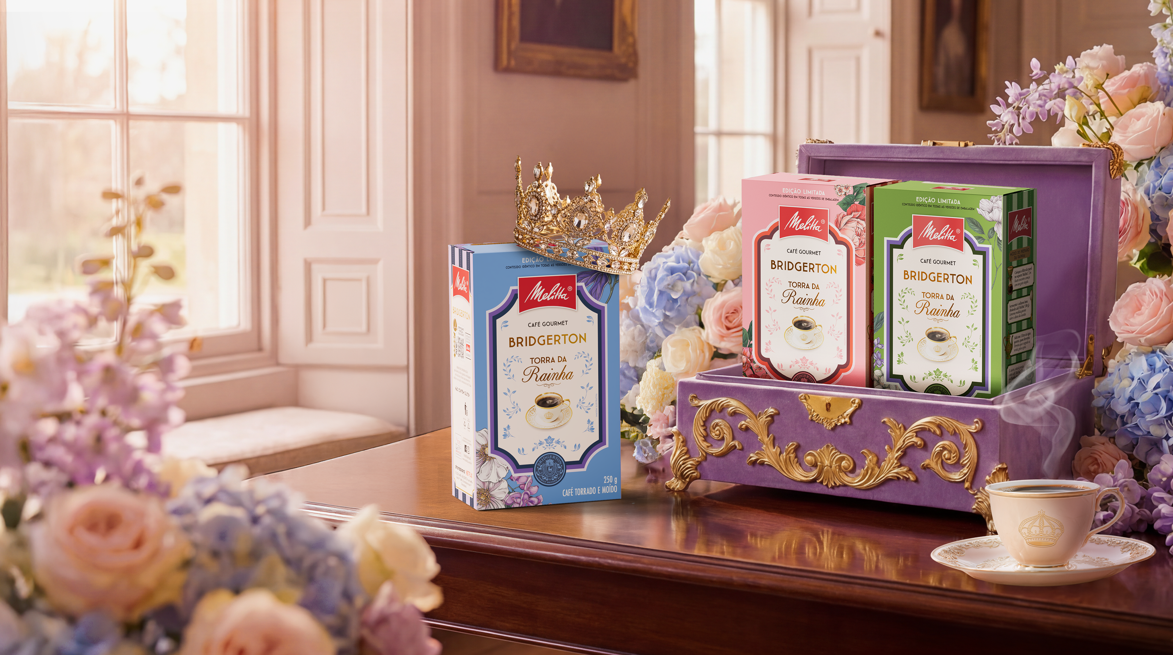 Cada uma das três embalagens foi pensada como um objeto de desejo: jardins secretos, ornamentos clássicos e uma estética que traduz o luxo da série. Os acabamentos gráficos elevam a experiência: relevo, verniz brilhante e hot stamping dourado no logo criam textura, brilho e profundidade, convidando ao toque.